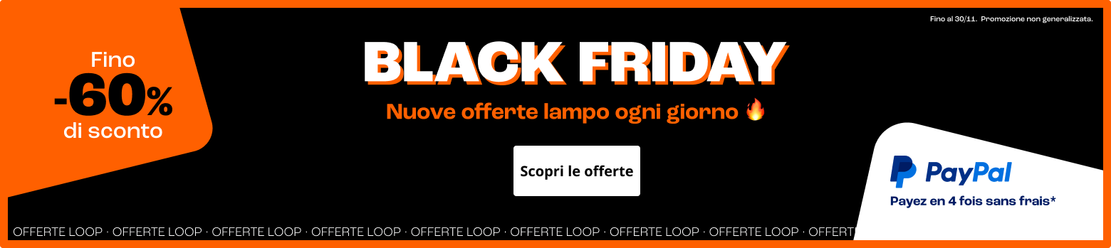 *Messaggio pubblicitario con finalità promozionale. "Paga in 3 rate" è disponibile per acquisti idonei di 30 € a 2000 €. TAEG 0%. Soggetto ad approvazione. Si applicano termini e condizioni. Consulta le condizioni indicate nel foglio informativo su paypal.it/pagain3rate. Un finanziamento è un impegno vincolante che deve essere rimborsato. Assicurati di essere in grado di ripagare prima di prendere un impegno. **Durata della promozione del Black Friday fino al 30 novembre.