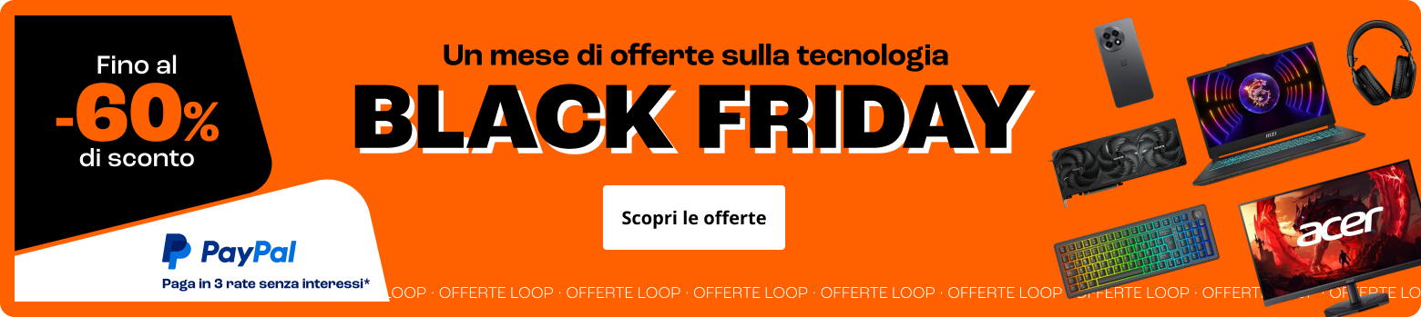 *Messaggio pubblicitario con finalità promozionale. "Paga in 3 rate" è disponibile per acquisti idonei di 30 € a 2000 €. TAEG 0%. Soggetto ad approvazioneSi applicano termini e condizioni. Consulta le condizioni indicate nel foglio informativo su paypal.it/pagain3rateUn finanziamento è un impegno vincolante che deve essere rimborsato. Assicurati di essere in grado di ripagare prima di prendere un impegno.​ **Durata della promozione del Black Friday fino al 30 novembre.