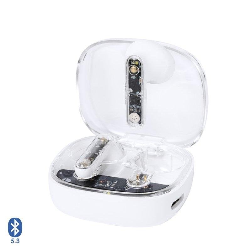 Auricolari Dam Electronics TWS wireless Bluetooth 5.3 con base di ricarica 200 mAh trasparenti