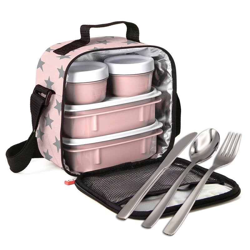 Borsa termica per il pranzo e set di posate Tatay Kit Urban Food. Stelle
