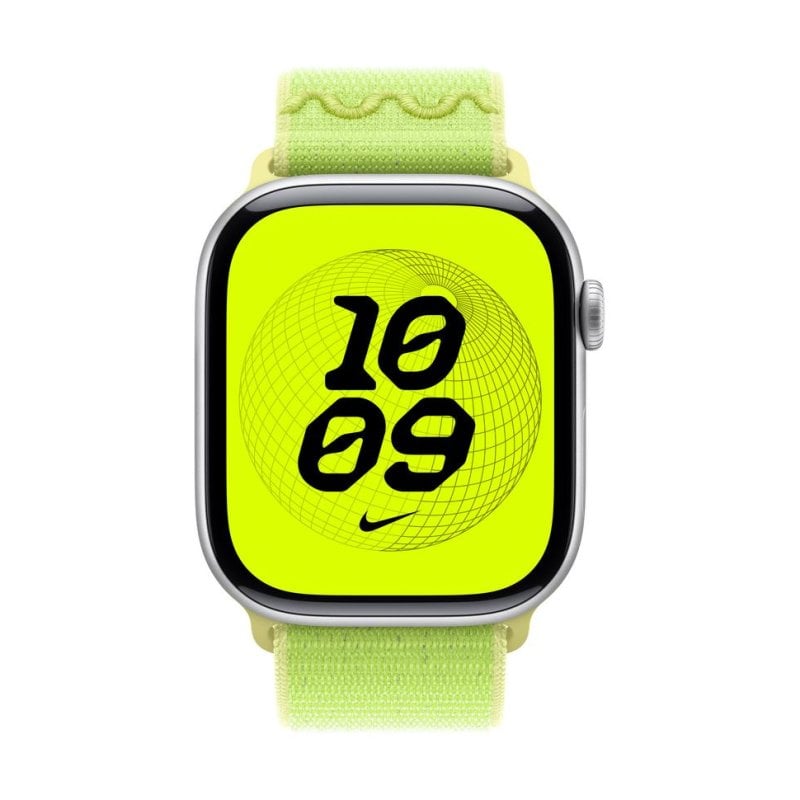 Rendi il tuo Apple Watch più confortevole e sicuro con il cinturino Nike Sport Loop giallo, ideale per sport e vita quotidiana.