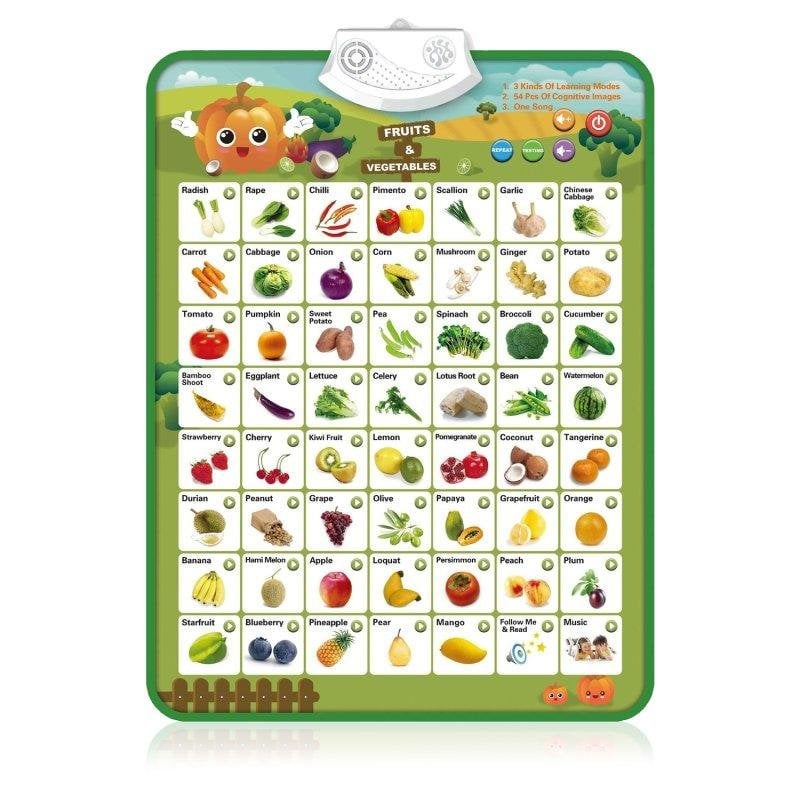 Dotato di pulsanti facili da premere e di un pratico controllo del volume, il dispositivo stimola i bambini ad imparare il nome delle lettere alfabetiche, frutti e verdure in inglese, contribuendo a rinforzare la memoria associativa tra immagini, testo e suono. Il sistema include canzoni per bambini selezionate per agevolare l'assimilazione di nuove parole, riducendo l’esposizione alle schermate digitali.