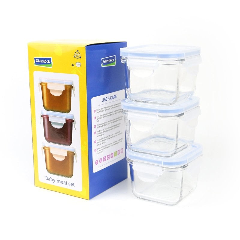 Glasslock Baby - Set di 3 contenitori quadrati in vetro temperato da 0,2 l