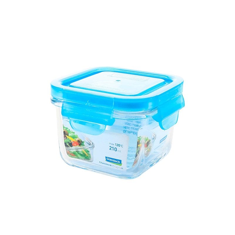 Glasslock Classic - Contenitore ermetico quadrato da 0,2 l in vetro temperato. Blu