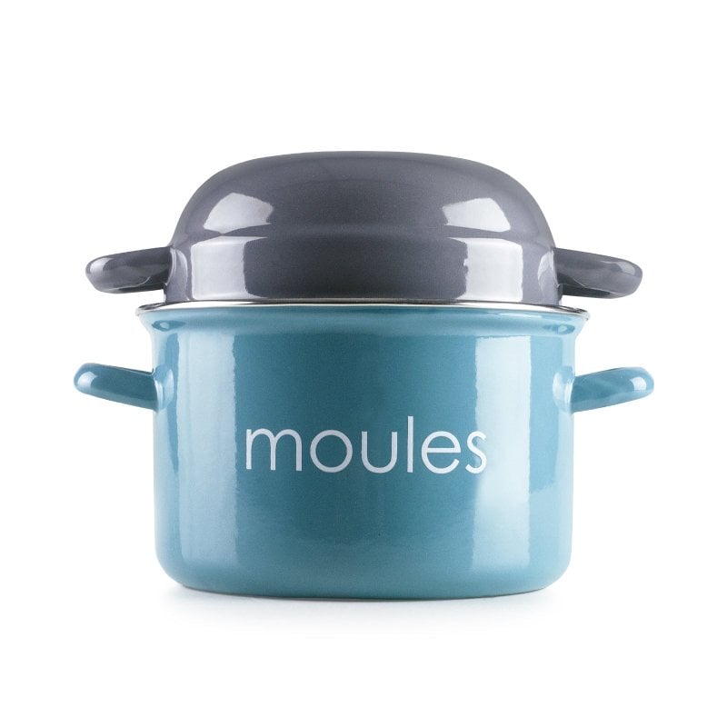 Ibili Moules - Pentola per cozze in acciaio smaltato da 18 cm con coperchio speciale. Turchese