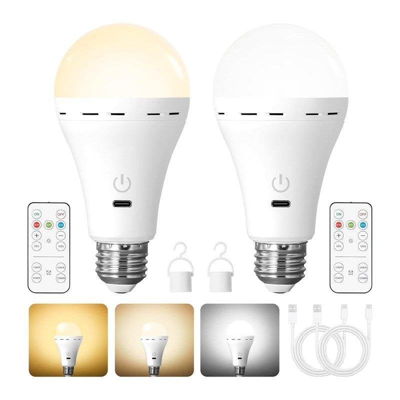 Kit 2 Lampade LED Ricaricabili E27 Autrucker con Telecomando, 3 Colori e Regolabili