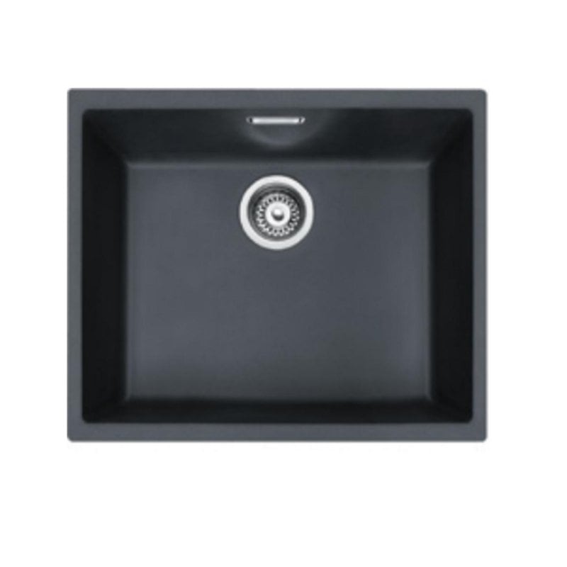 La dimensione utile della vasca è di 500 x 410 mm, mentre l'ingombro totale misura 525 mm di lunghezza e 440 mm di profondità. La configurazione con un solo foro filettato e la totale assenza di gocciolatoio garantiscono la massima superficie d'uso. La presenza del foro permette l'installazione di rubinetteria standard da piano, offrendo flessibilità durante la progettazione del bagno.