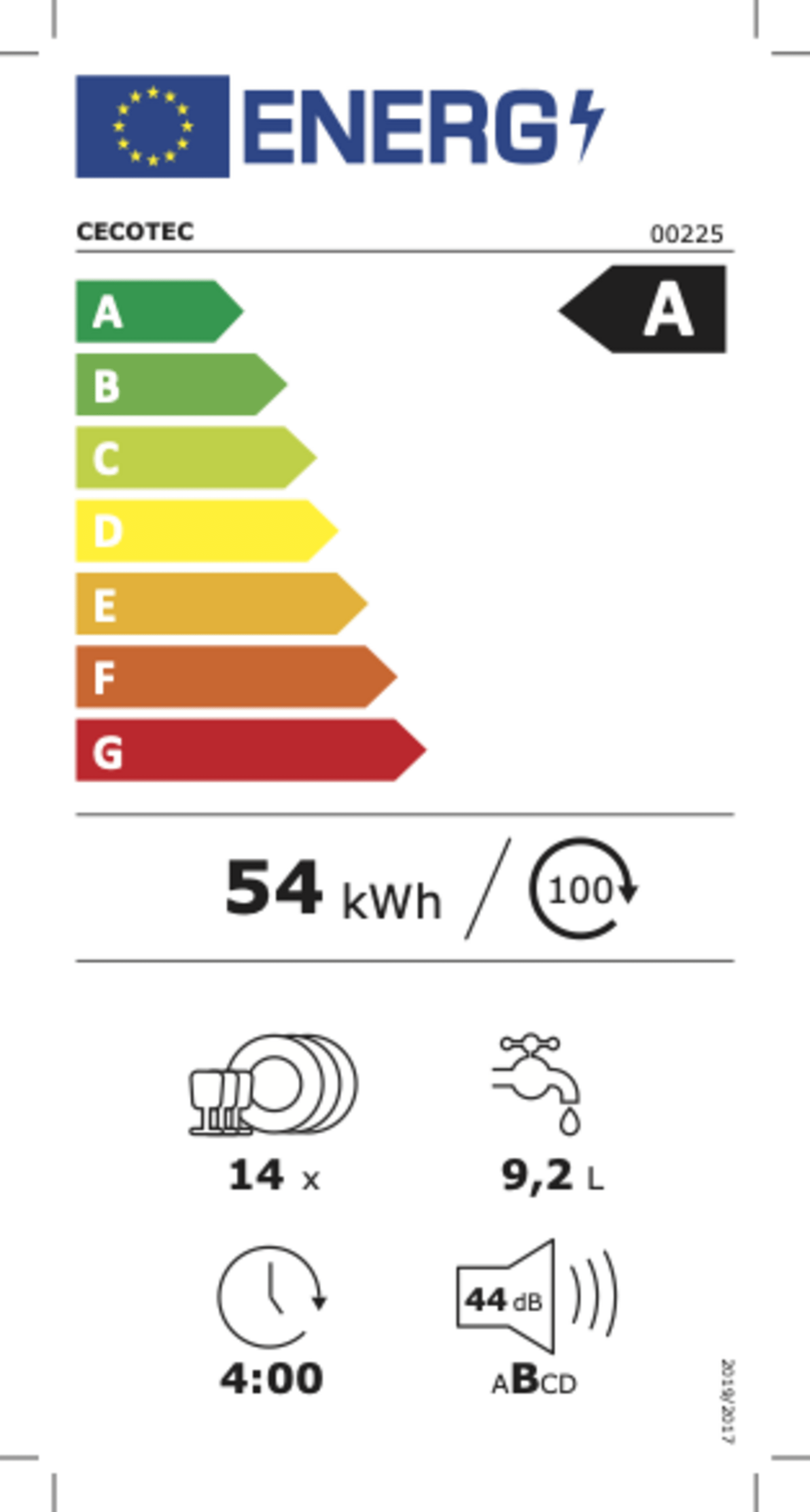 | Consumo energia per 100 cicli | 54 kWh |