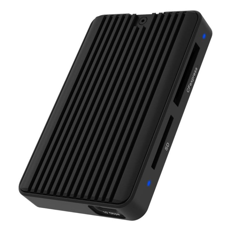 Estrema versatilità. Supporta schede CFexpress e SD, offrendo massima compatibilità con formati utilizzati in fotografia e video professionale. Grazie alla connessione USB 3.2 Gen 2 Tipo-C, garantisce velocità di trasferimento fino a 10 Gbit/s: ideale per spostare file RAW o video in alta risoluzione senza attese.