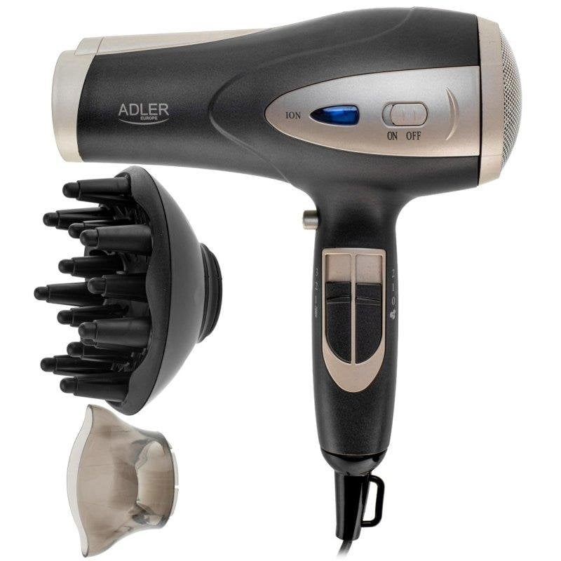 Phon Ionico Adler AD 2248gc 2400W 3 Temperature 2 Velocità con Diffusore Nero Champagne