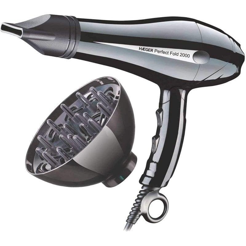 Phon Pieghevole Haeger Perfect Fold 2000W 3 Temperature 2 Velocità con Accessori Nero