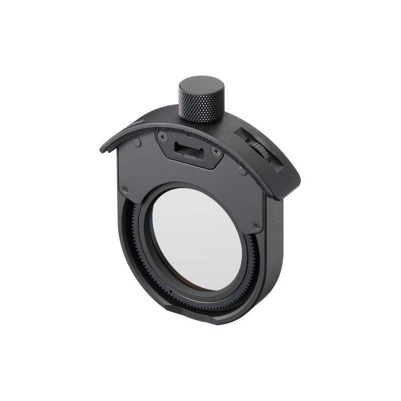 Filtro polarizzatore CPL rotabile. Il sistema permette di ruotare agevolmente il filtro da 46 mm tramite una manopola dedicata, ottimizzando la gestione dei riflessi su acqua, vetro e superfici lucide senza togliere mai l’attenzione dalla scena.