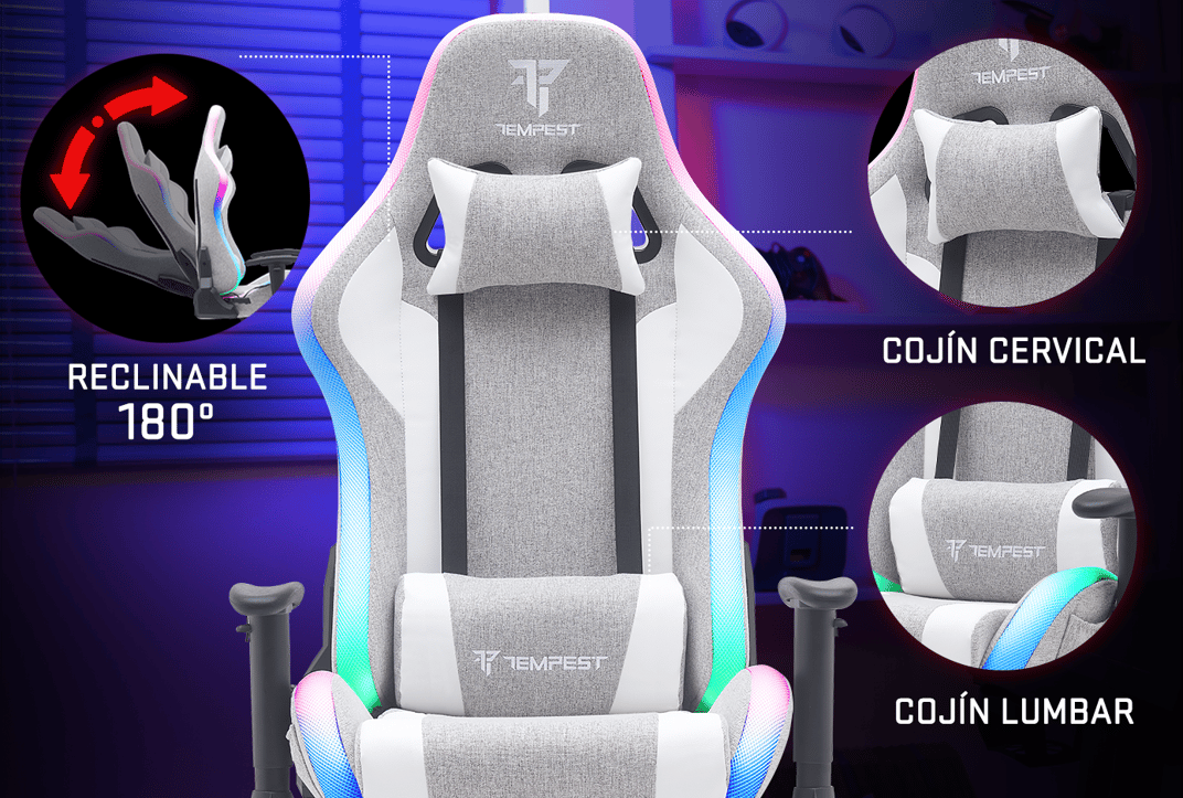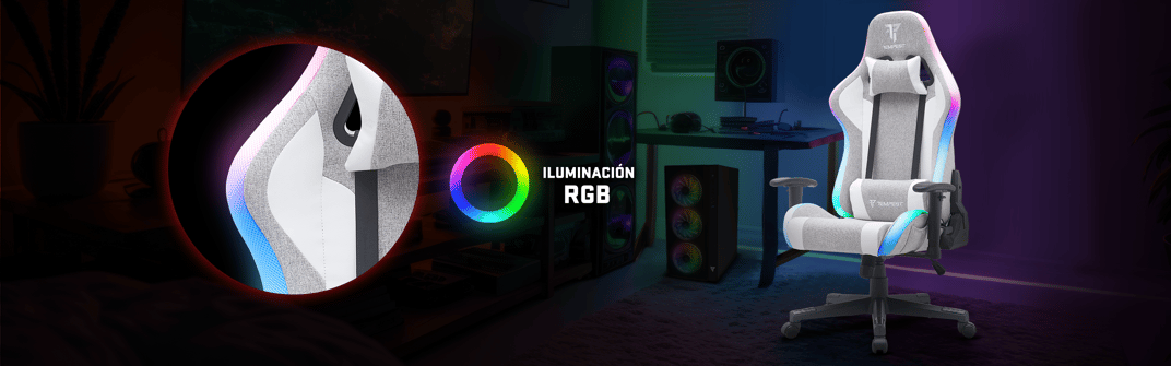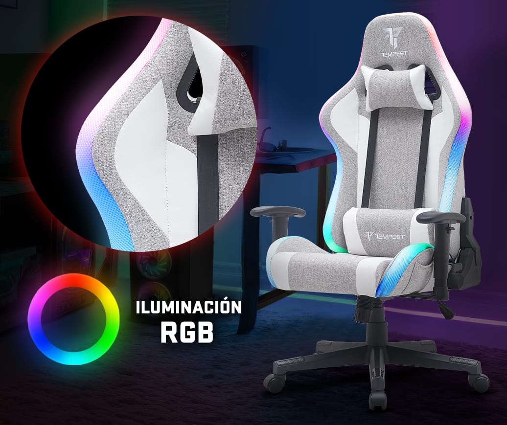 Sedia da gaming Tempest Glare RGB Tessuto traspirante grigio/bianco