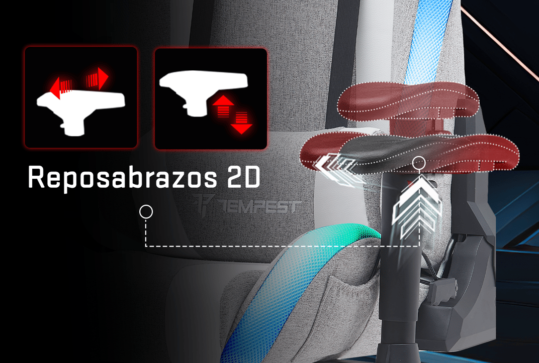 - Adattabilità. I braccioli 2D sono regolabili in altezza e angolazione, consentendoti di personalizzare la configurazione della sedia per il tuo comfort. Il meccanismo a farfalla garantisce maggiore durata e stabilità.