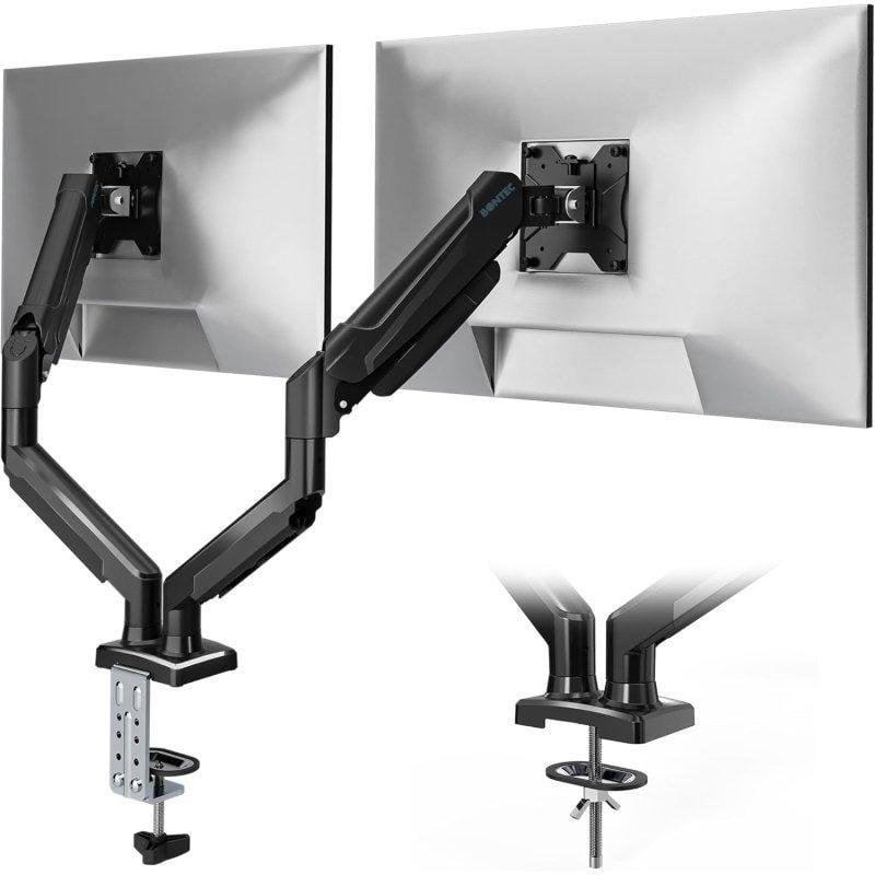 Ottimizza la tua postazione di lavoro con il Supporto Monitor duale BONTEC: ergonomia e flessibilità ai massimi livelli per professionisti.