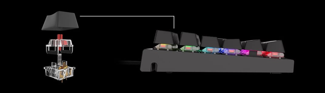 Il cuore del Thor 300 RGB sono gli interruttori "Outemu Red" di alta qualità che offrono la migliore esperienza nei giochi più impegnativi. Sono necessari solo 55 grammi di pressione per attivare il clic, e questo grazie al suo ottimo tempo di risposta di 8 ms che garantisce le migliori prestazioni nel gioco. I tasti hanno una durata straordinaria fino a 50 milioni di clic, quindi la tastiera funzionerà per molti anni.