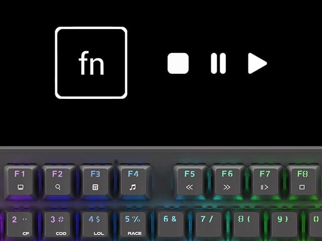 - Semplifichiamo la vita con i tasti multimediali. Grazie ai tasti multimediali, il Thor 300 RGB migliora la comodità delle operazioni quotidiane su un computer. Grazie alle varie opzioni situate sui tasti F1 - F12, hai un semplice accesso alle applicazioni più diffuse come la calcolatrice o la posta. Puoi anche controllare comodamente i tuoi file multimediali: cambia facilmente il brano in riproduzione e regola il volume anche mentre suoni.