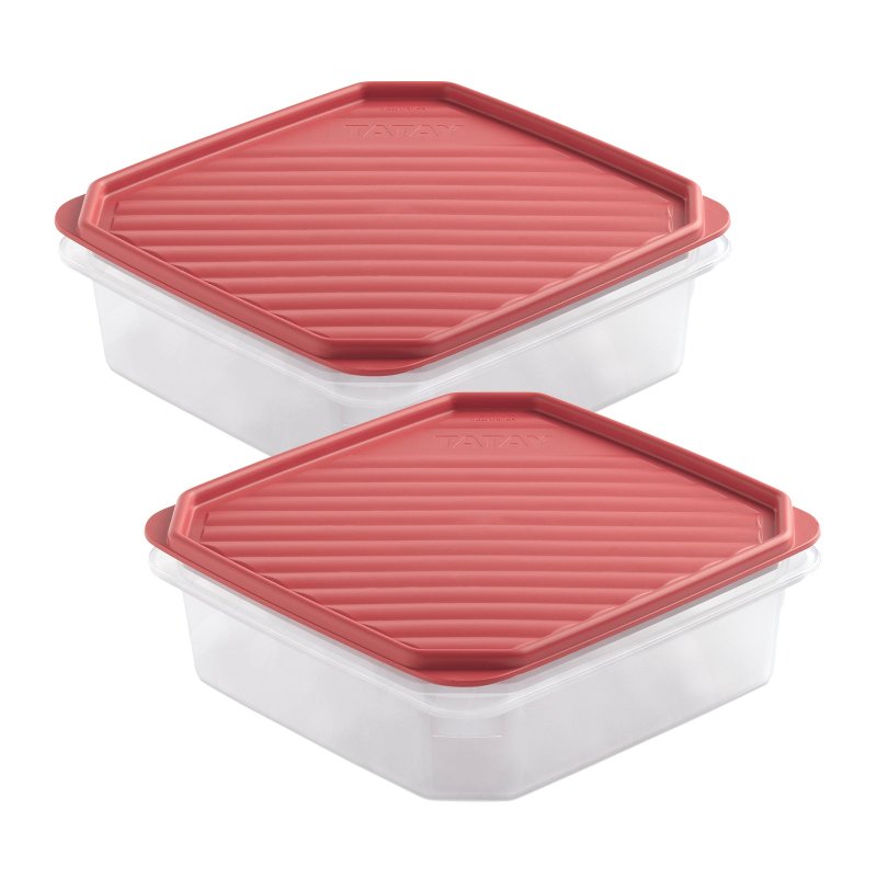 Confezione da 2 contenitori quadrati piatti TATAY Top Flex da 1,3 l, realizzati in polipropilene con coperchio ermetico a pressione, molto resistenti e facili da pulire. Il coperchio è flessibile e progettato per consentire l'impilamento dei contenitori.