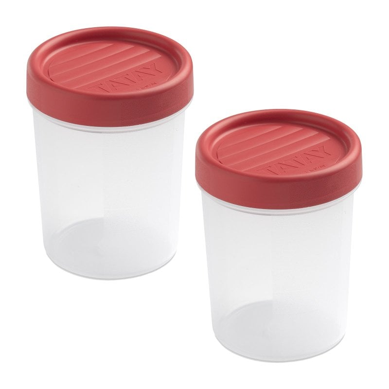 Confezione da 2 contenitori rotondi TATAY Twist da 0,4 l in polipropilene con coperchio a vite, molto resistenti e facili da pulire. Ideali per trasportare o conservare frutta, noci, snack, pappe, ecc.