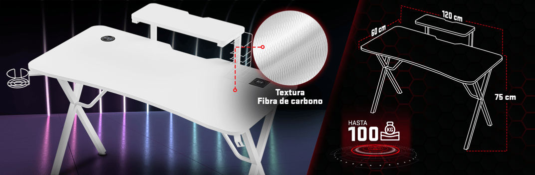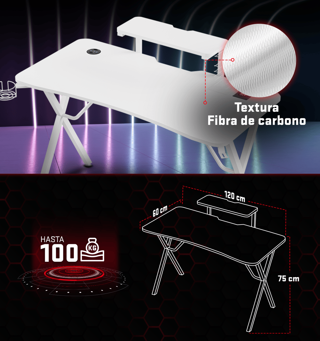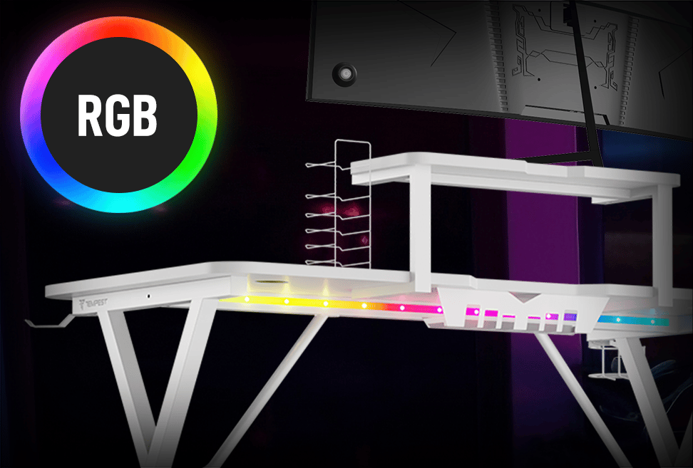 Il design ergonomico di Tempest Haven garantisce un'esperienza di gioco confortevole e funzionale. Con una capacità di carico massima di 100 kg, questo tavolo è costruito per supportare attrezzature pesanti, garantendo stabilità e resistenza. Le luci RGB integrate ti consentono di personalizzare l'atmosfera, immergendoti ancora di più nel mondo dei giochi e aggiungendo uno straordinario tocco visivo al tuo spazio di gioco.