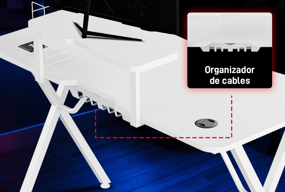 Inoltre, Tempest Haven è progettato pensando alla gestione dei cavi, mantenendo tutto in ordine e senza grovigli. Questa funzionalità non solo contribuisce a un'estetica impeccabile, ma garantisce anche un ambiente di gioco pulito e privo di distrazioni. Con questo tavolo da gioco non ottieni solo uno spazio di gioco, ma un centro di comando ben attrezzato ed elegante per le tue avventure virtuali.