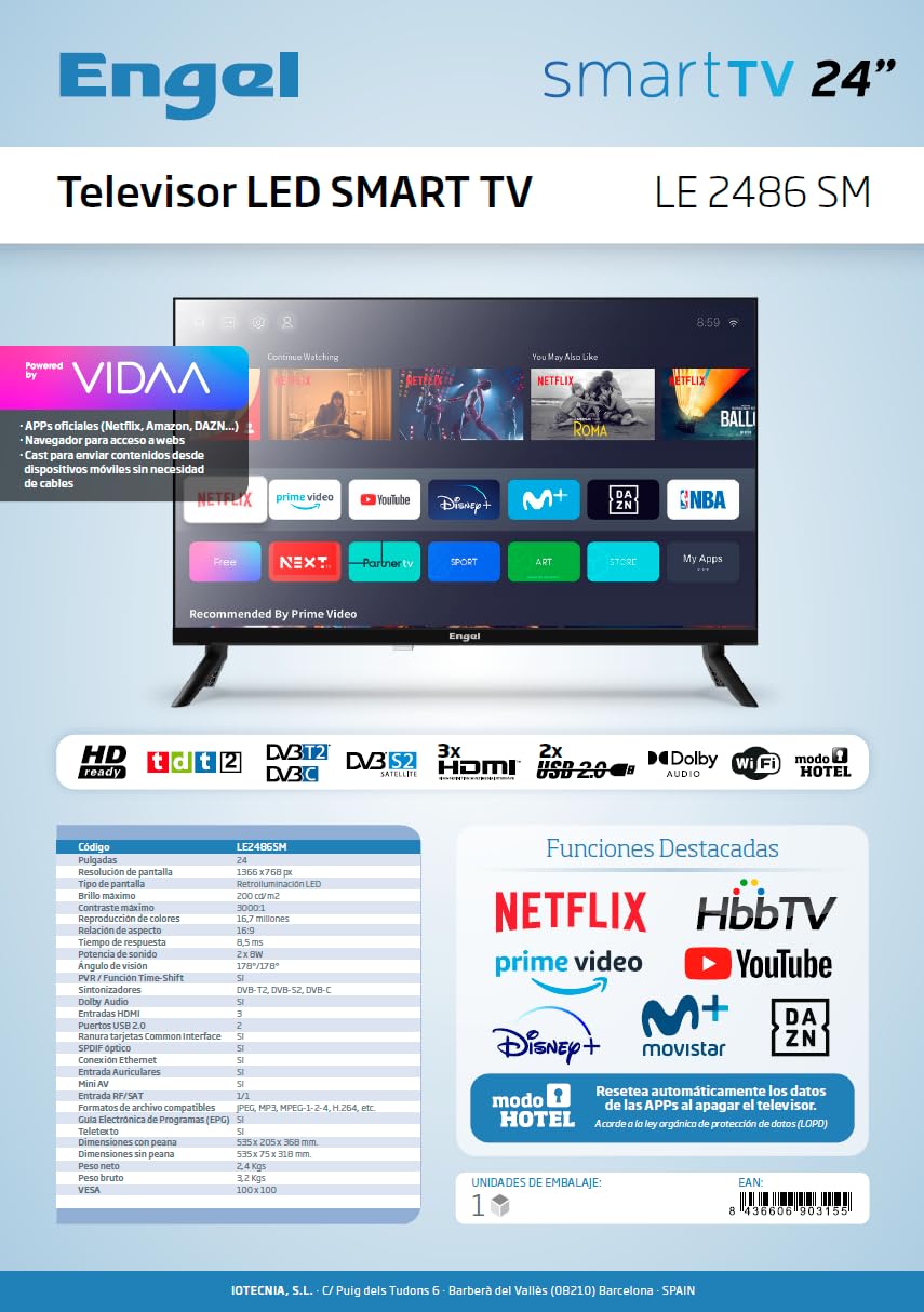Migliora l'esperienza di intrattenimento in spazi compatti con la TV Engel LE2486SM: immagini vivide, audio avvolgente e massima connettività smart.