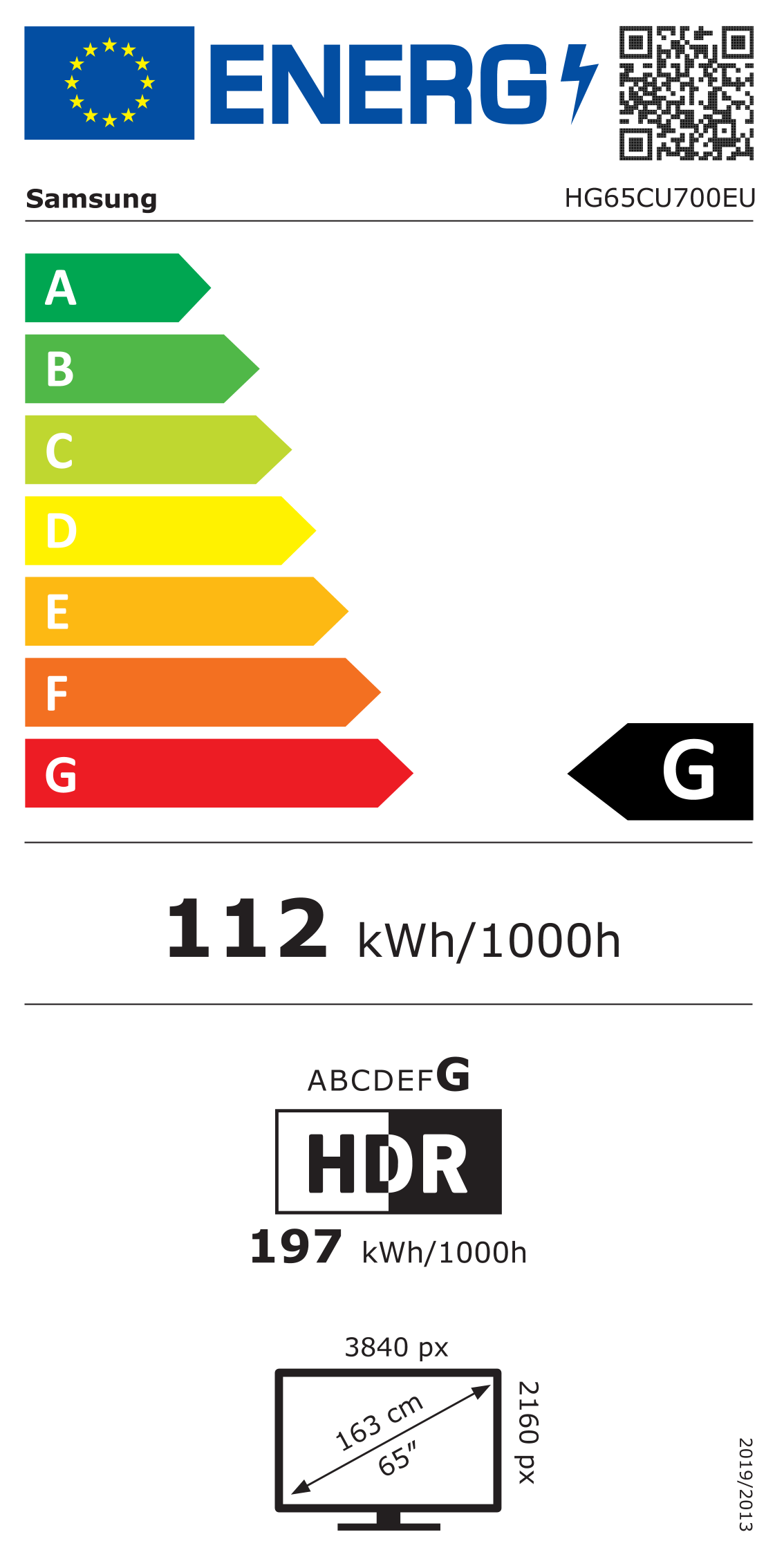 Consumo energetico | 112 kWh/1000h (classe G) |