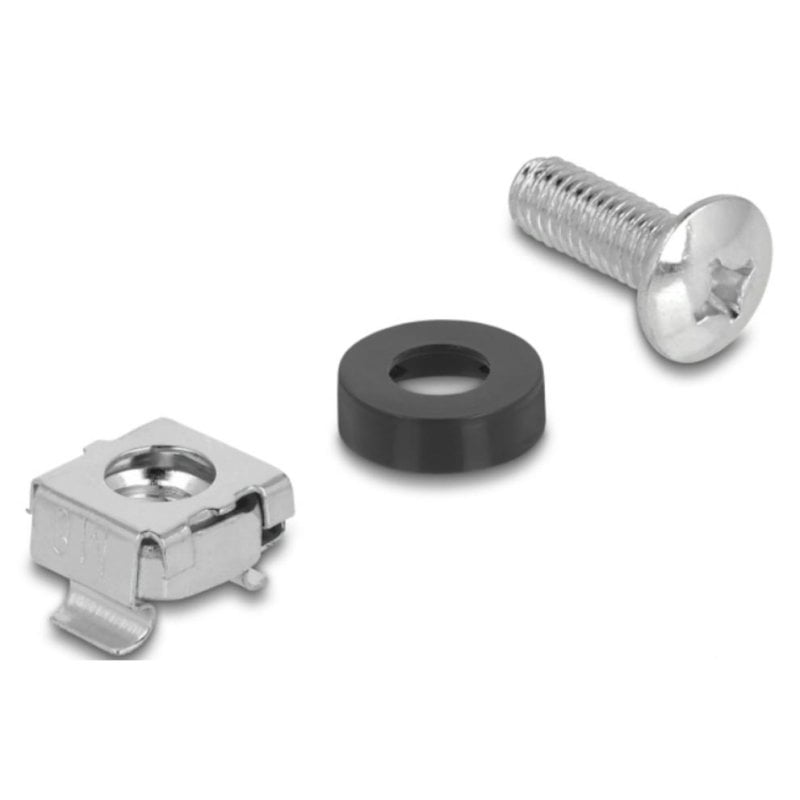 Compatibilità universale. Con filettatura M6, il kit si adatta alla maggior parte degli standard industriali per l’assemblaggio di hardware, chassis, reti e installazioni professionali. Il colore nero e argento permette un’integrazione estetica ottimale in ambienti tecnici.